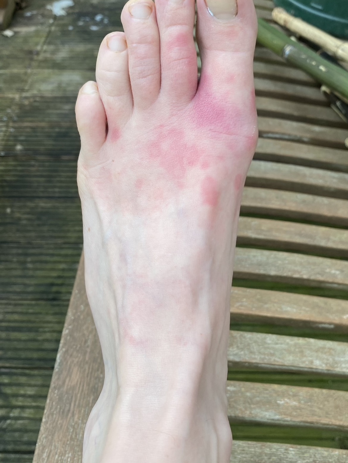 Observation and subsequent classification of a long healing process of erythema migrans following a tick bite, erysipelas (st. erysipelas) due to a rubbed wound and thick, painful foot.